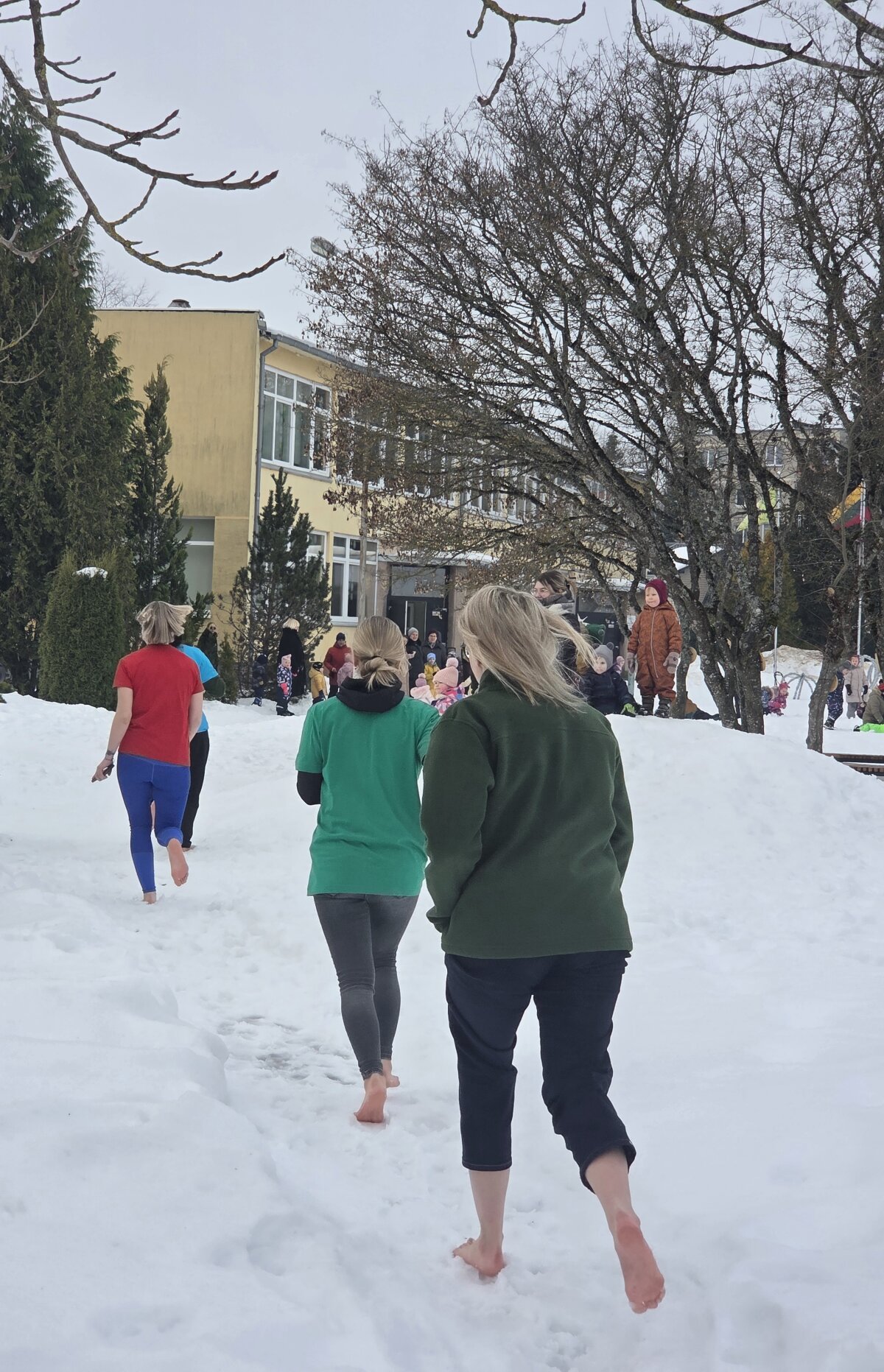 Mažeikių lopšelyje-darželyje „Žilvitis“, pasibaigus didiesiems šalčiams, S. Kneipo draugijos narės kupinos entuziazmo, basomis kojomis išbėgo į darželio kiemą, prabėgo basakojų taku, o vaikai palaikė gausiais plojimais, stebėjo ir džiaugėsi grūdinimosi procedūra. Braidymas po sniegą – tai laimės temperatūra žemiau nulio!