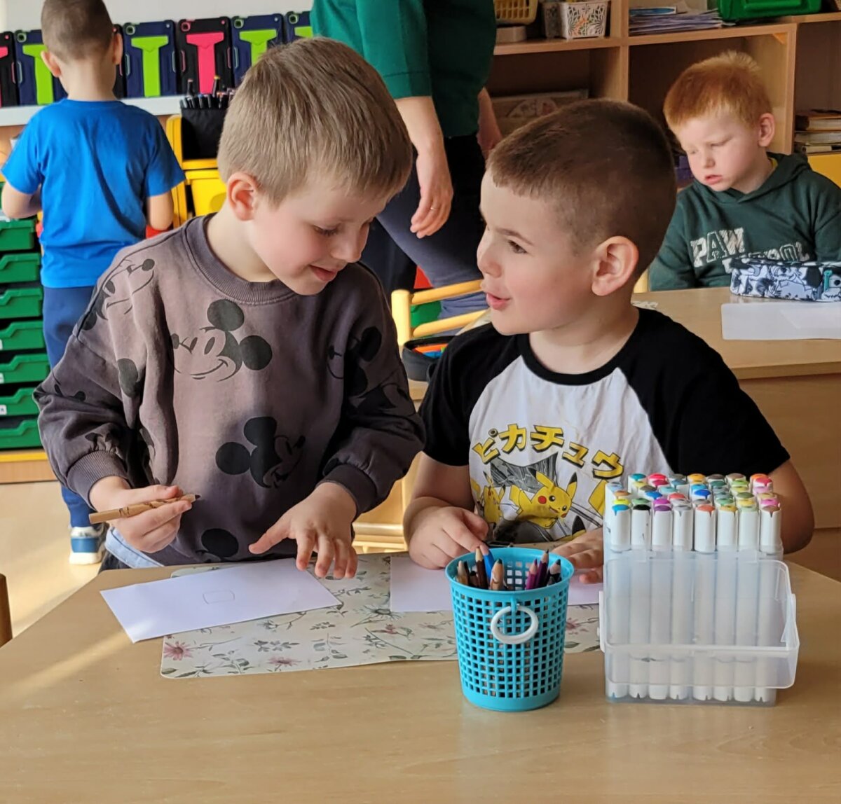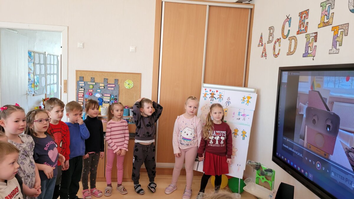 Kovo 12 d. Mažeikių lopšelio-darželio „Žilvitis“ „Kodėlčiukų“ grupės vaikai apsilankė priešmokyklinėje „Smalsučių“ grupėje ir susipažino su būsimomis mokytojomis, dalyvavo veikloje. Vaikus pasitiko ir linksmai pasveikino robotas Žilvitonas, kuris pakvietė leistis į smagią robotų pasaulio kelionę. Robotų tema integruota iš tarptautinio eTwinning projekto „STEM žingsniai į tvarią ateitį“ („STEM Steps for a sustainable future“), todėl vaikai turėjo galimybę ne tik smagiai praleisti laiką, bet ir daugiau sužinoti apie robotus. Jie dalyvavo įdomioje viktorinoje, kur atsakinėjo į klausimus, spėliojo ir džiaugėsi teisingais atsakymais. Vėliau visi kartu šoko linksmą robotų šokį, judėjo tarsi tikri robotukai, žaidė įvairius žaidimus, bendravo ir bendradarbiavo. Kūrybinės veiklos metu vaikai piešė robotus-spalvingus, išradingus ir labai skirtingus. Susitikimas buvo kupinas gerų emocijų, juoko, kūrybos ir naujų draugysčių.