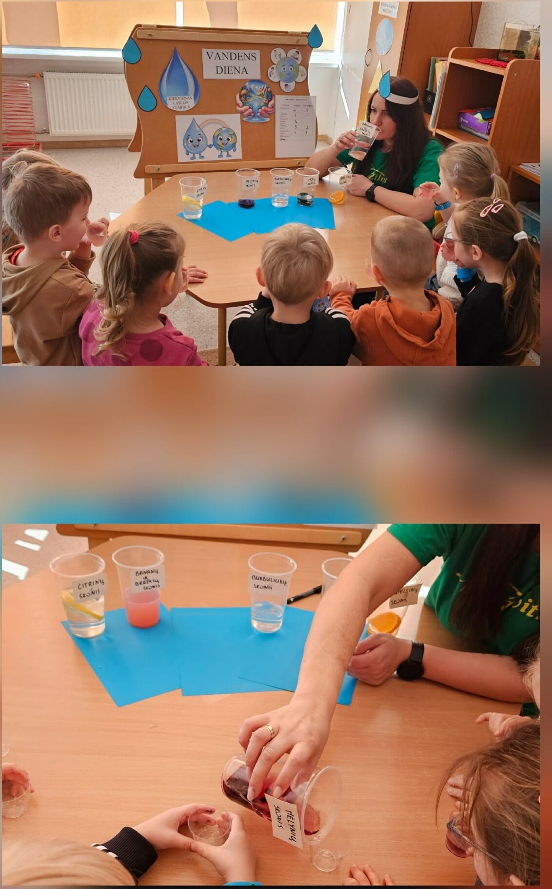 Kovo 22 d. visame pasaulyje minima Pasaulinė vandens diena, kurios tikslas – skatinti kiekvieno sąmoningą požiūrį į didžiulę vandens svarbą! Lietuva yra viena iš nedaugelio Europos valstybių, kur gyventojai naudojasi požeminio vandens ištekliais. Tačiau ne visos pasaulio šalys turi galimybę naudoti požeminį vandenį: naudojamas daugiau valymo reikalaujantis paviršinis, kritulių vanduo, o Afrikoje iki vandens telkinių žmonės priversti eiti ilgus atstumus. Mūsų darželyje jau tapo tradicija kasmet, minint Vandens dieną, nuo pat ryto tėvelius, vaikučius ir darbuotojus sutikti vaišinant įvairių rūšių (čiaupo, šaltinio, šulinio, virintu, mineraliniu) vandeniu, beržo sula. Visi, kurie ragavo vandenį, vertino labiausiai patikusį skonį. Daugiausiai patiktukų surinko beržo sula. Dėkojame visiems dalyvavusiems degustacijoje.